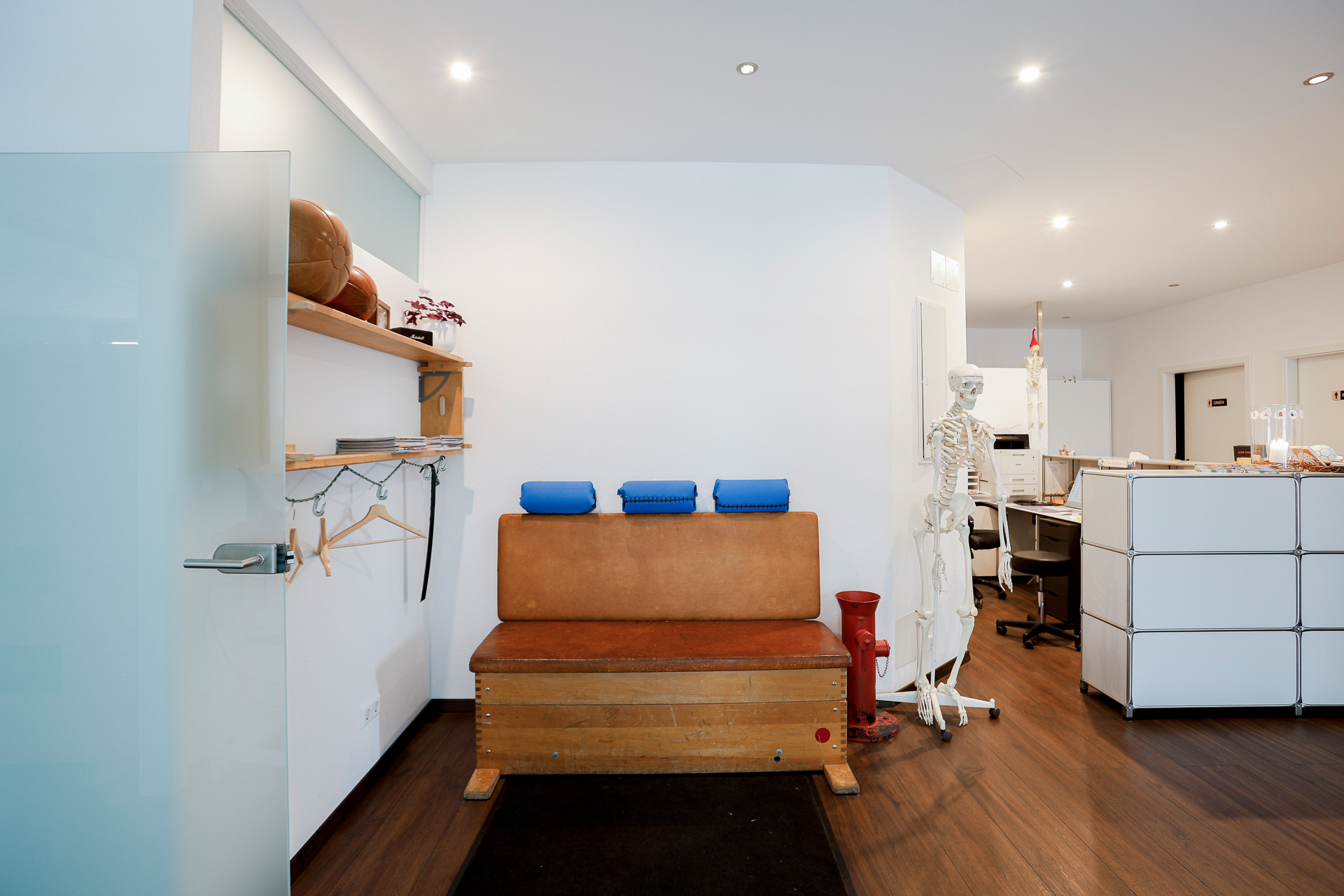 Hier heißt man Sie willkommen, auf unserem Turnkasten dürfen Sie es sich bequem machen, und warten bis Ihr Therapeut Sie abholt.